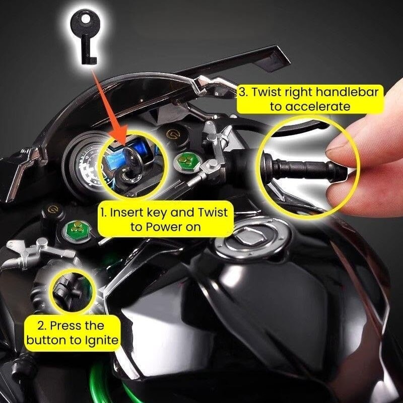این ماکت حرفهای از برند Nab Cell (نابسل) با طراحی فوقواقعگرایانه و جزئیات دقیق ساخته شده و با افکت دود واقعی، صدای موتور و نورپردازی جذاب، حس واقعی موتورسواری را شبیهسازی میکند.