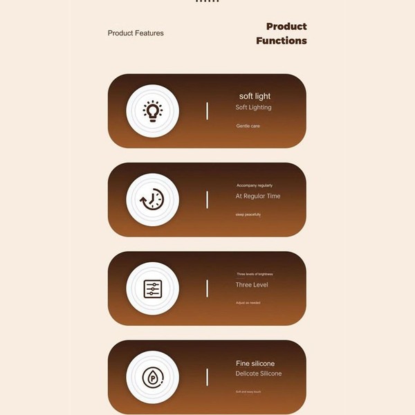بدنهی چراغ از سیلیکون نرم و باکیفیت ساخته شده که علاوه بر لمس لطیف، ایمنی بالایی دارد و در برابر ضربههای سبک مقاوم است. نور LED ملایم و غیرآزاردهنده آن، فضایی آرام برای خواب ایجاد میکند و چشم را خسته نمیکند.