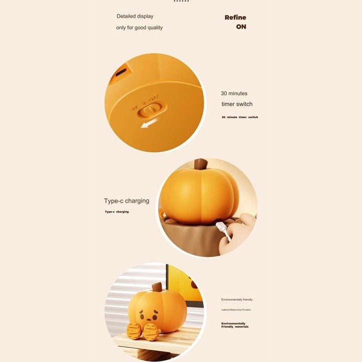 🔹 ویژگیها و امکانات چراغ خواب کدو تنبل